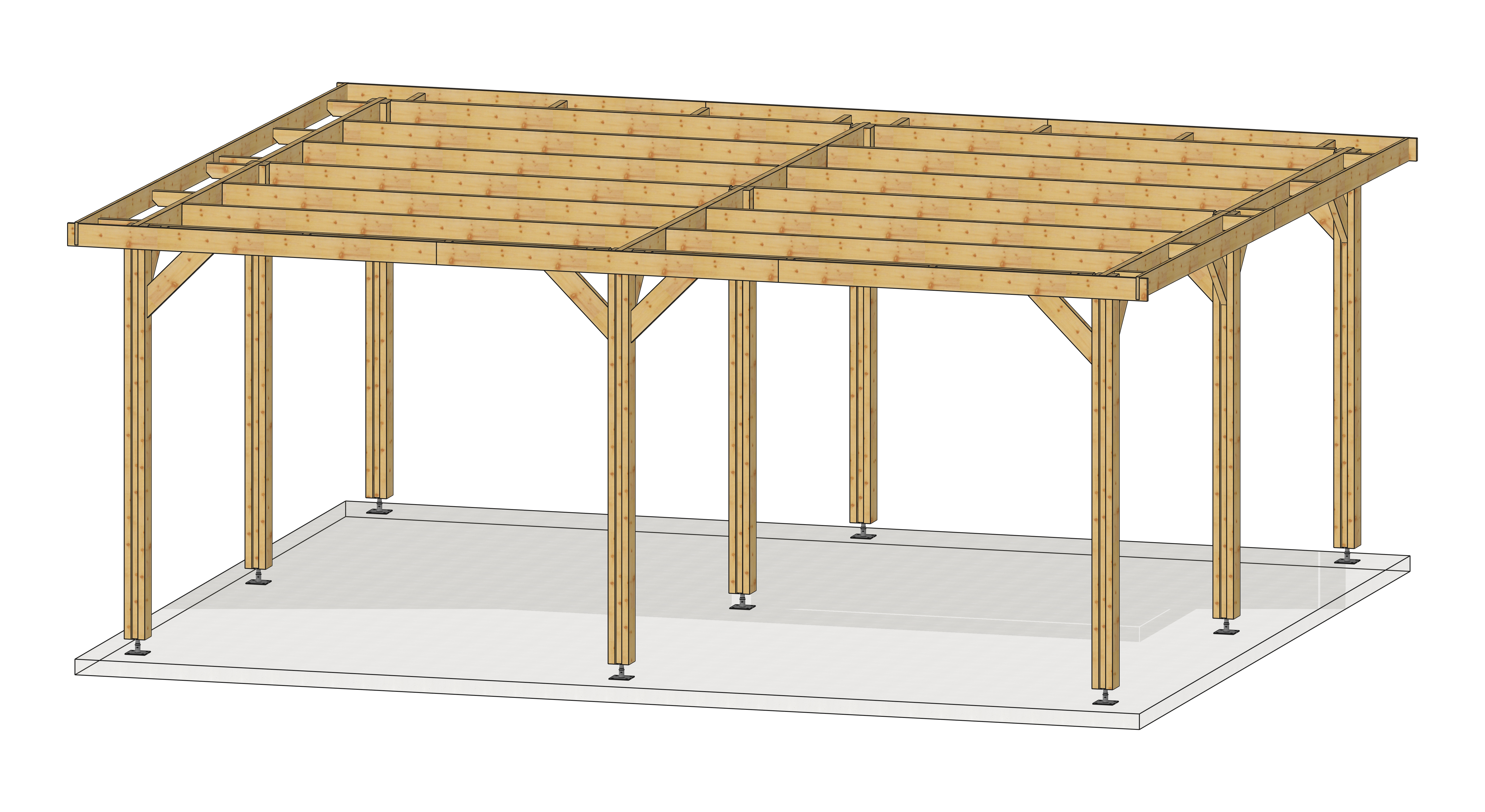 Abri Toit Plat, Bois DOUGLAS Français (Carport - Auvent - Abri voiture) 700cmx500cm.
